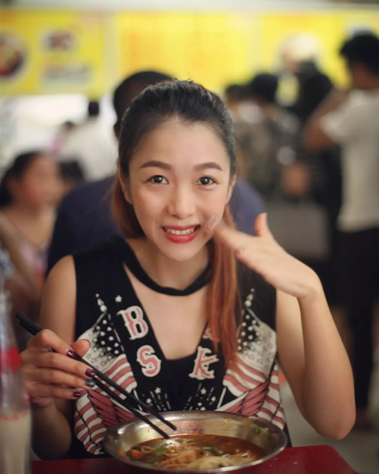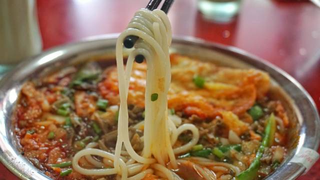 “一两 少辣,加腐竹,加豆角酸!”