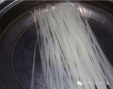 2.浸泡过后煮5分钟,能用筷子夹断米粉就可以放在面碗里备用。