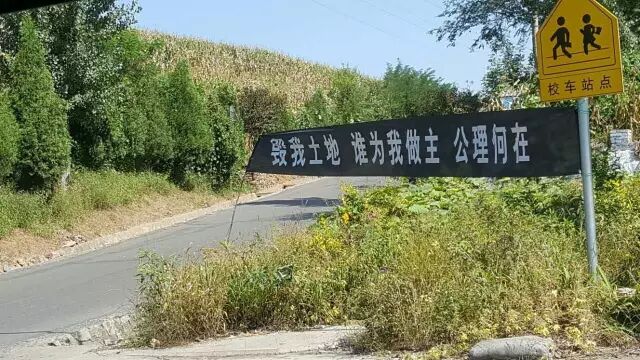 上面写着“毁我土地,谁为我做主,公理何在”