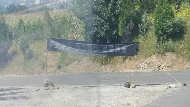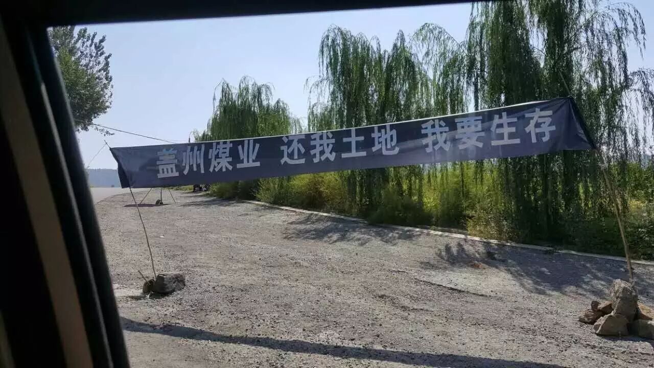 位于我市的盖州煤业与近日由于土地问题,附近村民拉起黑色横幅,