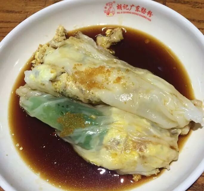 其实第一次吃肠粉的时候,感觉还挺奇特的,粉皮中间包着许多配料,玉米、生菜等等,按照种类不同,还会有鲜肉、叉烧、生蚝等,再淋上酱汁,感觉自己都快忍不住口水了!