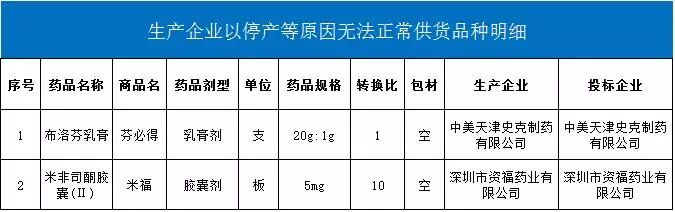 3.生产企业因停产等理由不履约,将暂停该品种的采购资格。具体品种见附件1。共2个品种。