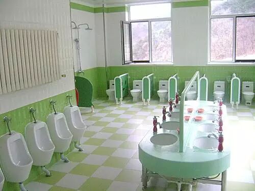 开放式的蹲厕,不习惯。和家里的小马桶不一样,学校的厕所大多不是马桶而是一条沟。公共厕为了卫生和传染设计成这样是可以理解的,但是孩子们不理解。看到一条沟在那里,不知道怎么拉了。
