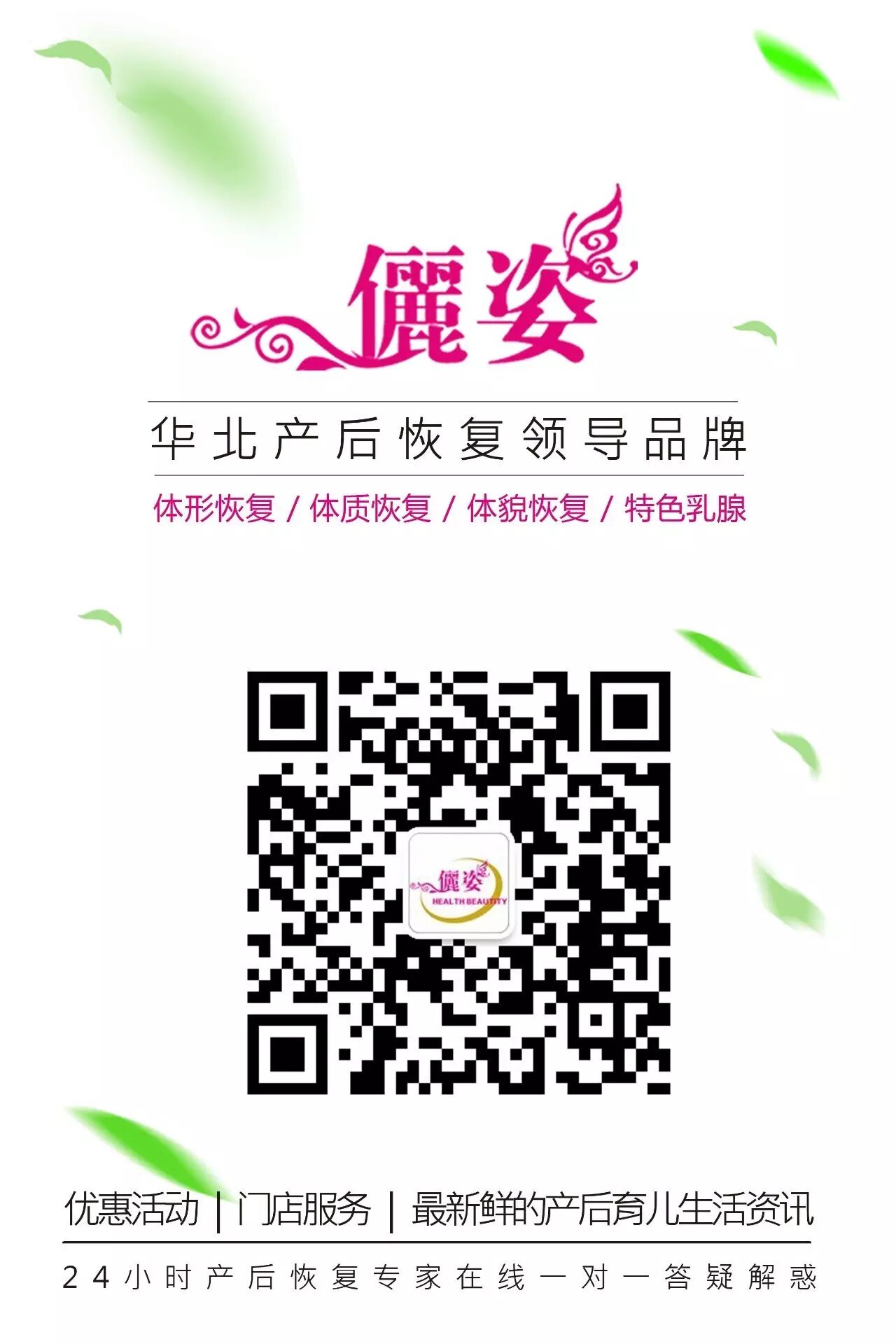 方法:微信平台留言,俪姿产后恢复专家一对一解答!