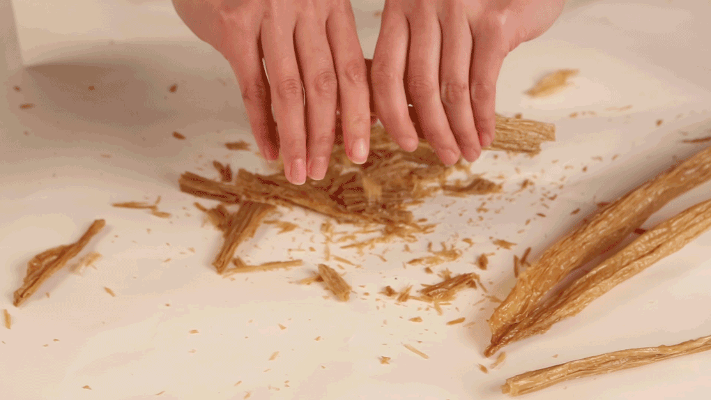腐竹因为太干,所以非常脆,轻轻一掰就断掉