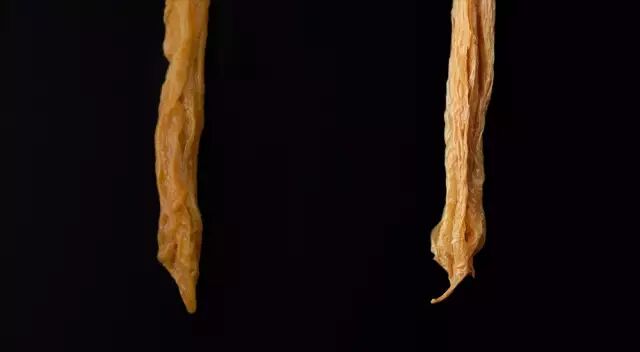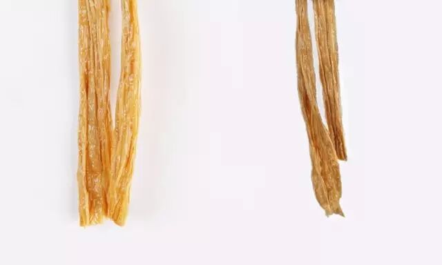 左边是回浆工艺的腐竹 右边是纯粹头层腐竹