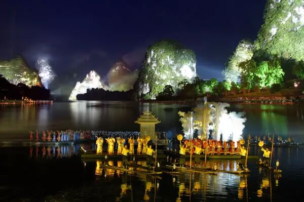 以自然为舞台的印象刘三姐,放眼望去,漓江的水,阳朔的山,化为中心的舞台,给人宽广的视野和超人的感受。