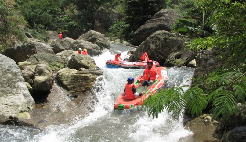 龙脊峡漂流,看两岸群峰嵯峨,树木茏葱竞秀,在那有惊无险的漂流中感受无穷的乐趣。