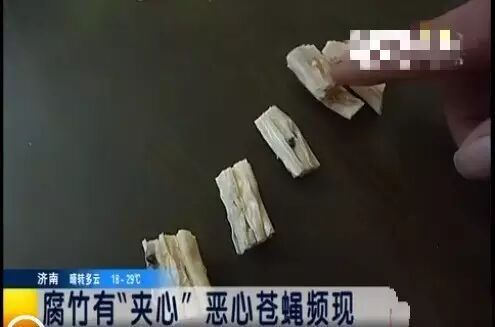 据山东广播电视台生活频道《生活帮》报道,张先生在蓬莱的一家食堂工作,有时候负责采购。前不久他把采购来的腐竹泡发之后,竟然吓了一跳,紧张之余,张先生也纳闷了,好好的腐竹里面怎么会有苍蝇。