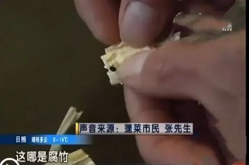 经过仔细的辨认,张先生确认苍蝇不是在他泡发腐竹的时候飞进去的。蓬莱市民张先生:“苍蝇是夹在腐竹里面的,扒开看里边全是苍蝇。”