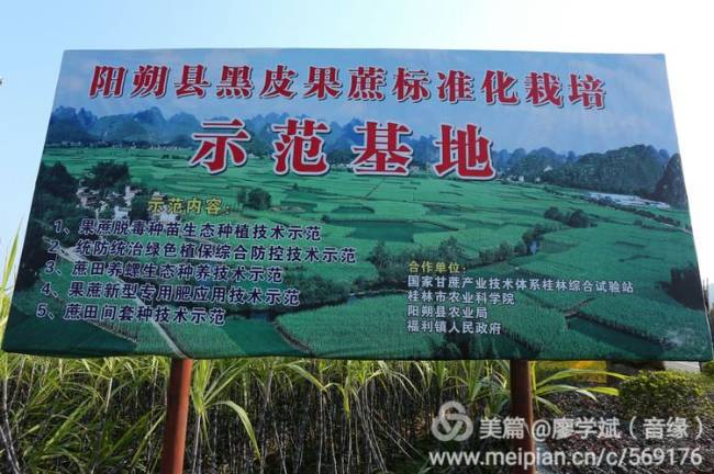 蔗香甜园阳朔县黑皮果蔗标准化栽培示范基地位于福利镇东部的枫林村委,处于福利至平乐公路旁,距集镇3公里。