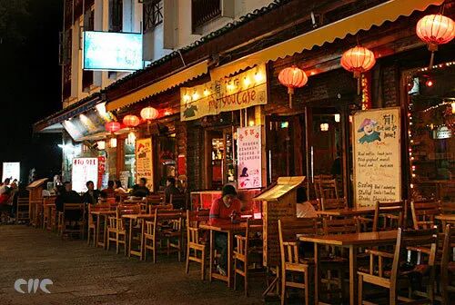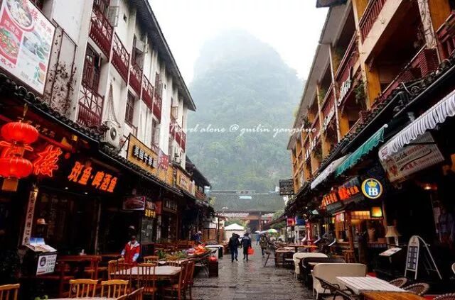 “陶潜彭泽五株柳,潘岳河阳一县花,两处怎如阳朔好,碧莲峰里住人家”,夜晚不能错过西街,这里被戏称为洋人街,是外国人在中国最密集的一条街。街上的饭店网吧酒吧都是中西合璧的,几乎所有招牌都有中英对照,从老板到服务员到街边小贩都能说一口流利的英语。“偷得浮生几日闲”,也许到这里才能感受到什么叫生活。