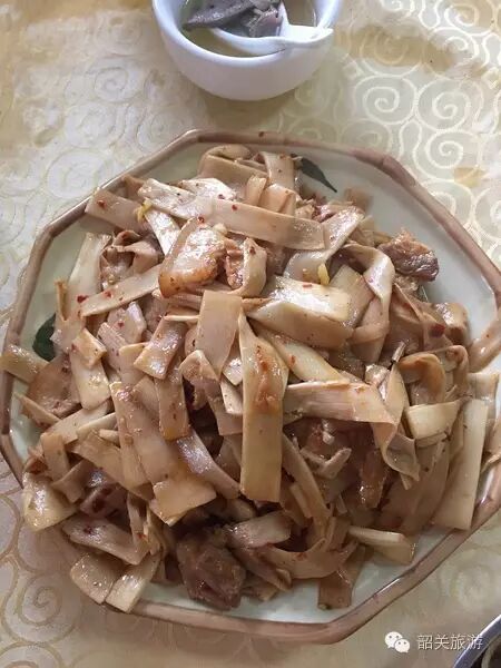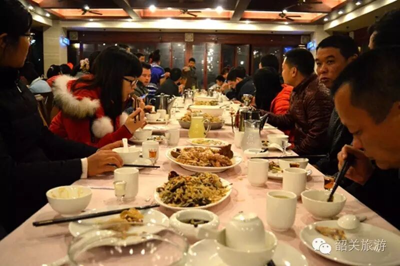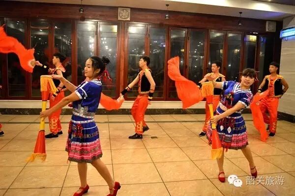 随着夜幕的降临,在2016“韶关味道”旅游美食季指定接待餐饮企业——广东大峡谷丽宫果园餐厅内,一场富有瑶族风情的歌舞长桌宴在鼓舞欢笑中进行。长桌宴上的客人们品尝到的,皆是当地特色的美味佳肴,如清蒸南水湖鲩鱼、三杯农家鸡、蒸酿豆腐、大布笋干炒土猪肉等。