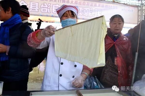 在腐竹体验区,工作人员耐心讲解并演示了腐竹制作的工序,吸引了不少游客和摄友的围观。在工作人员一拨一挑等动作下,一张张香滑诱人的新鲜腐竹诞生了~