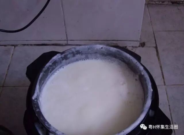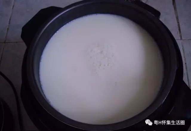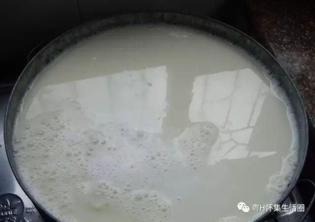 豆浆烧开,去掉泡泡。
