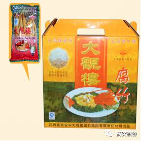 高安“大观楼”牌腐竹1988年荣获首届中国食品博览奖,1994年荣获第五届贸易会博览会金奖。高安“大观苑”牌腐竹2001年荣获第七届中国国际博览会金奖。