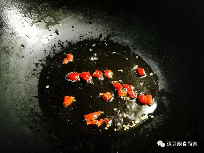 配料:红椒半个(不辣)、干辣椒3枚、盐、酱油少许