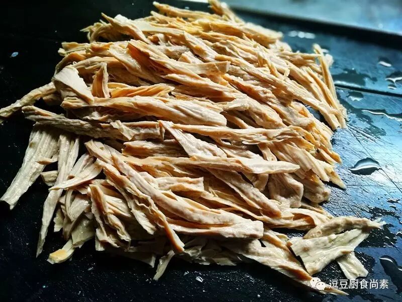 3.腐竹、冬笋都切成丝(有点粗,象条了)