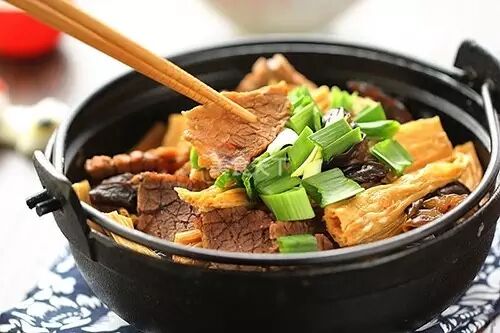 羊肉飞水时可以在水里放入柠檬片或姜片,帮助去臊味。腐竹浸泡软后沥干水,放入羊肉中不要煮太久,以免煮的太烂不成形。酱料里有盐分,加盐时只需少量添加或试过咸淡后再加盐。