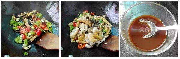 12、芡汁: 小碗中加蚝油、老抽、白糖、鸡精和淀粉各适量加清水调匀;