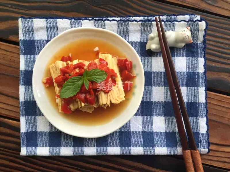 7、腐竹装盘后淋上剁椒就可以上桌了