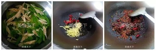 3、 锅中放入适量的油,下入豆瓣酱翻炒;