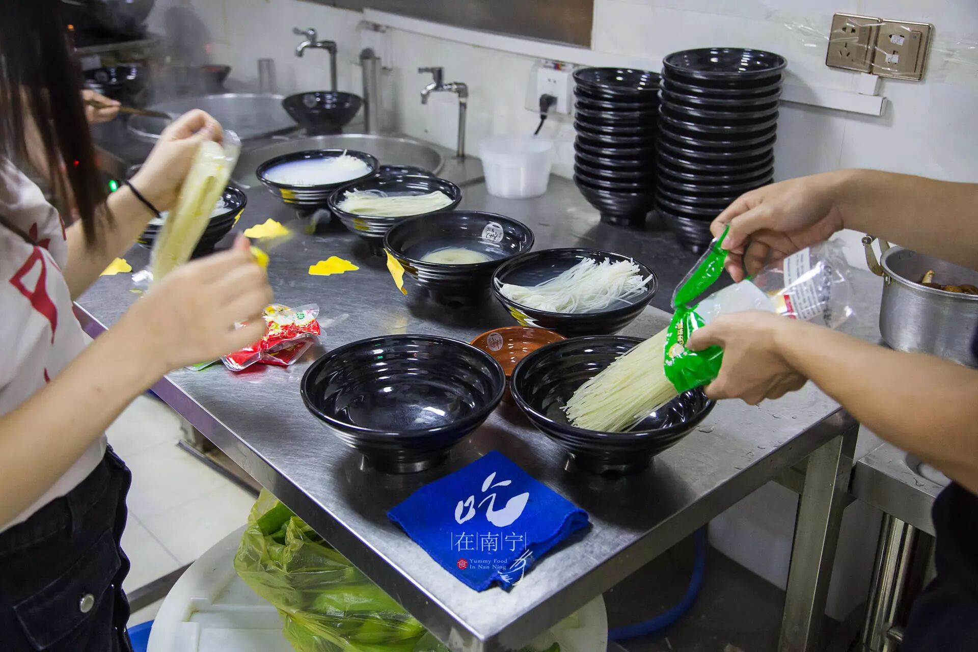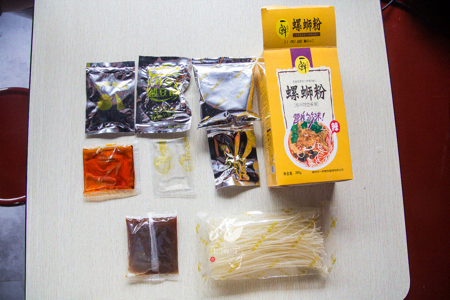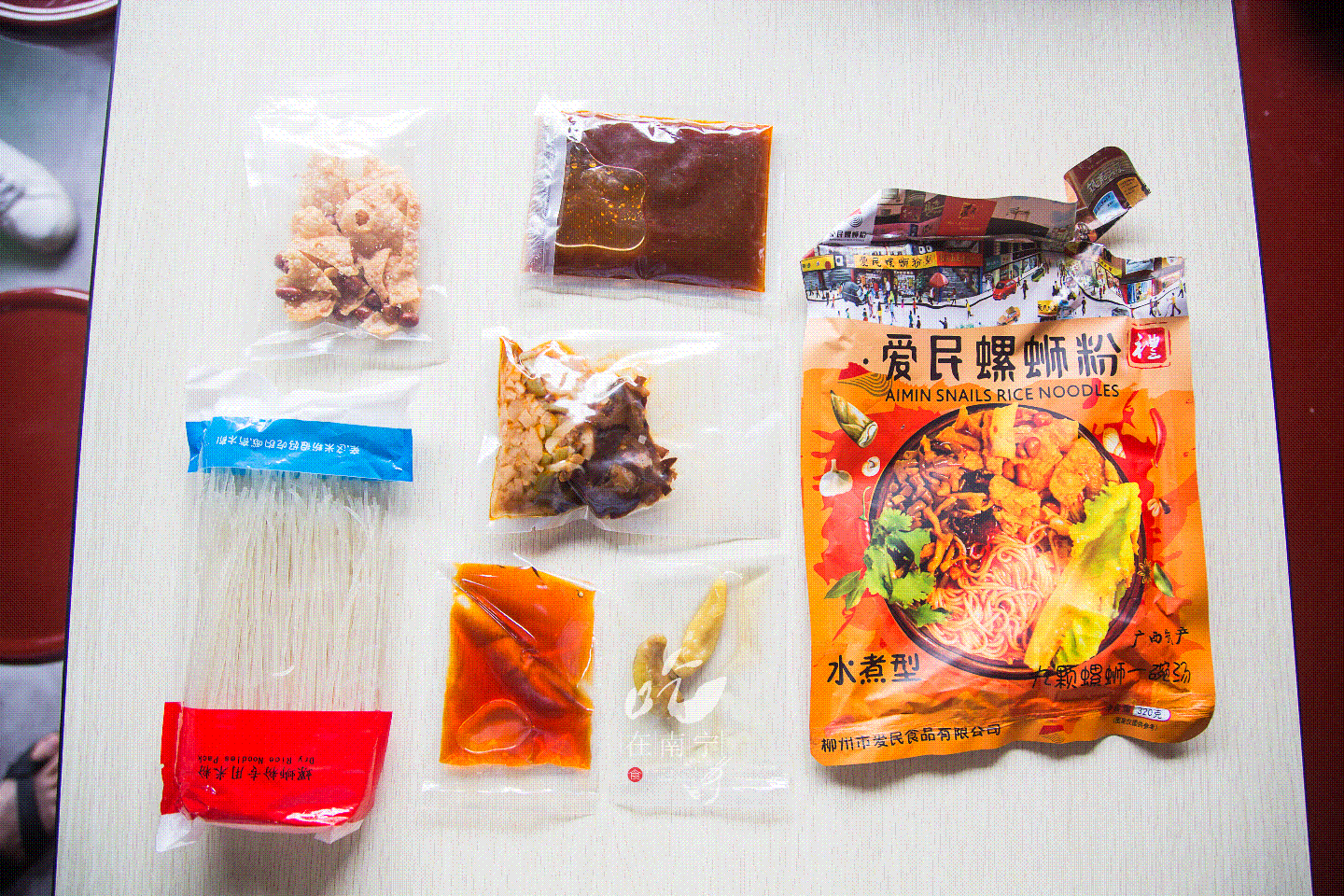 该泡就泡,该多少分钟就多少分钟。因为是在一鲜螺蛳粉的店里操作的,器具设备齐全,而且有煮粉师傅的帮忙,整个过程简单了很多,再次感谢一鲜螺蛳粉!