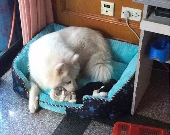 可是怀都怀了,又能怎样呢?!网友只能在萨摩怀孕期间更加细心的照顾,多多陪着它...终于萨摩生了,生了4只小宝宝,两白两黑都十分健康,可是网友一看,给气坏了!