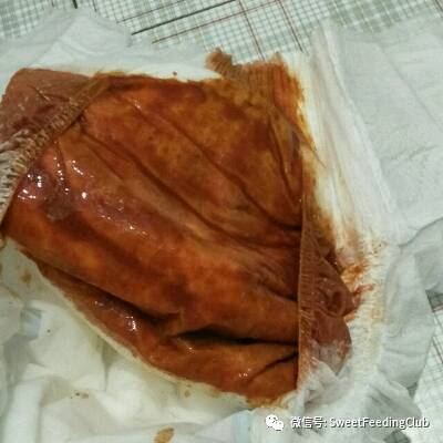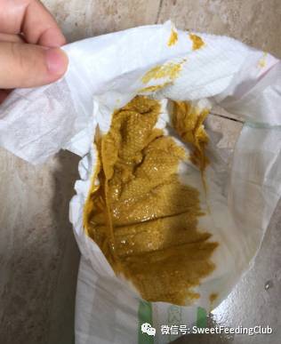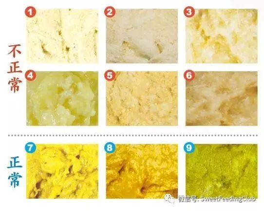 粑粑一般为黄色或金黄色、偶尔带绿色,软膏状或带有少许黄色大便颗粒。无明显臭味有时略有酸味。