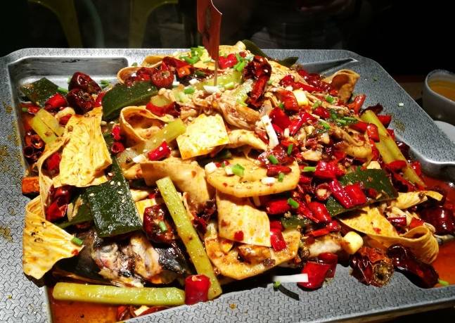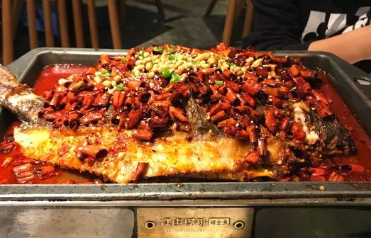蜀江烤鱼是流行的川式烤鱼却与传统烧烤做法有着明显的不同,它采用“先烤后炖”的独特做法,融合了烤、炖两种烹饪工艺的精华。把鱼加入汤汁调味料边吃烤,比较鲜美。