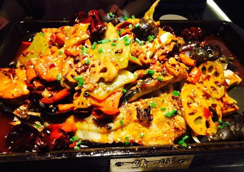 豆豉烤清江鱼,口感不辣清江鱼刺少,吃起来很过瘾,烤的焦焦的鱼,浸透着浓郁的豆豉香味,配菜里的土豆,青笋,藕片,腐竹,千页豆腐也有豆豉的香味。土豆应该是炸过之后放进去的,糯糯的~
