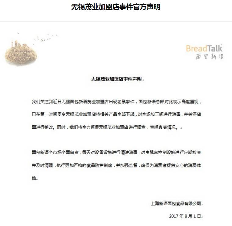 据了解,面包新语来自新加坡,是全球第一家挂牌上市的面包企业,有着“面包界星巴克”之称,在全国有多家门店。