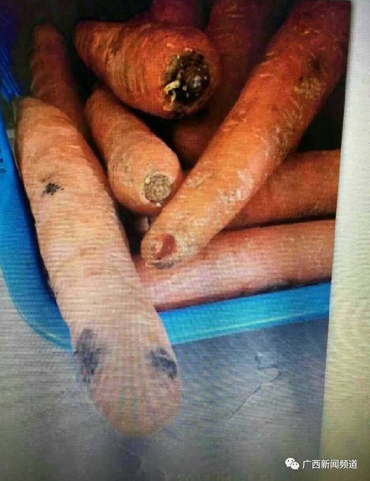 一位以前在该幼儿园上班老师卿女士说,这样的现象早在今年4月28日就出现了,那一天,幼儿园老师在厨房发现了一筐长着大小霉点的胡萝卜。