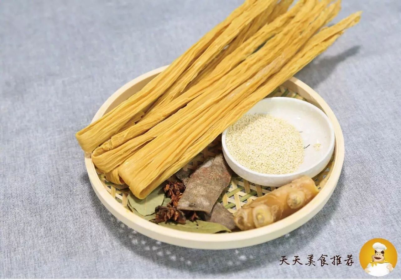 腐竹、葱段、香叶、八角、桂皮、姜片