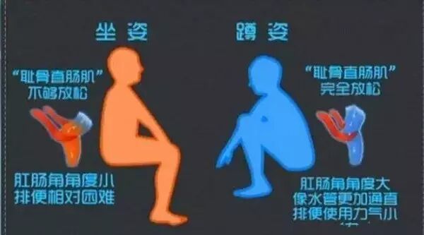 然而,相关研究表明蹲姿更容易拉耙耙,原因在于坐着拉粑粑,耻骨直肠肌只是部分放松;而蹲着拉,肌肉能完全放松,所以拉得更放松、更彻底。如果不方便蹲厕,可以脚踩个小板凳,以减少大腿和躯干的夹角,达到模拟自然蹲姿的效果。