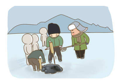 13因为冬天没啥菜吃,有时候大家串联着就一起打打鱼。