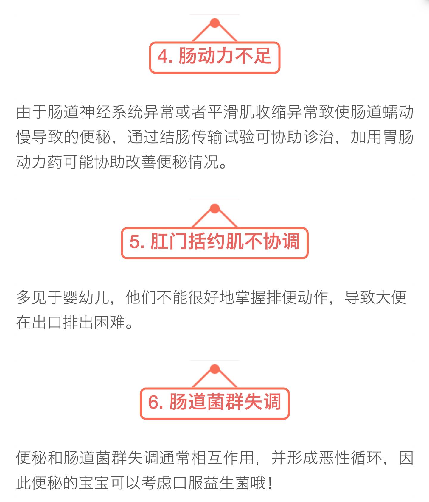 其实,绝大多数孩子都是功能性便秘,大概占了90%-95%,也就是说他们并没有器质性的疾病,而主要与饮食、排便习惯、心理因素、肠动力不足、肛门括约肌不协调以及菌群失调有关。