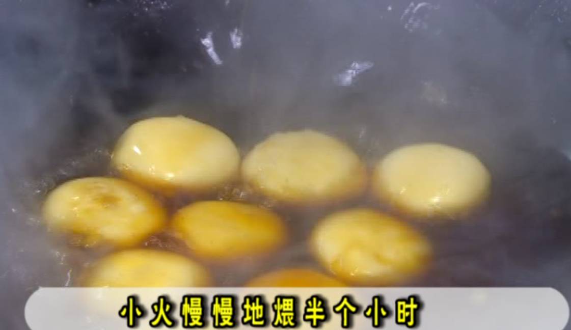 倒入水,糖煮化后倒入糯米圆子,小火慢慢的煨半个小时,这道糖油粑粑就做好了。