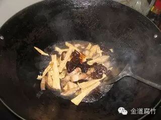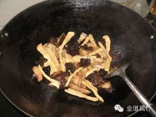 5、将木耳和腐竹入锅炒匀。