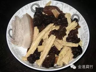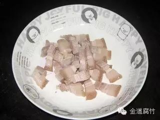 原料:五花肉、木耳、腐竹、青红椒、蒜头、盐、生抽。