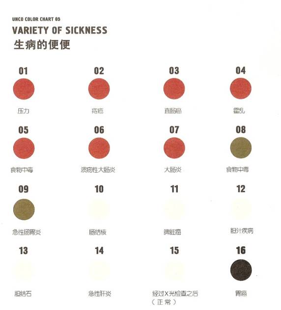 粑粑的颜色可以直接反应一个人的健康状况,如下图示:
