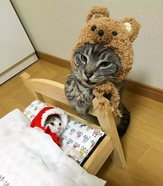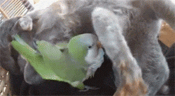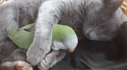 13 主人新养了一只小鸟,还怕家里的猫对它做什么,现在倒好,猫咪跟它腻的不行,整天要抱着它睡觉~