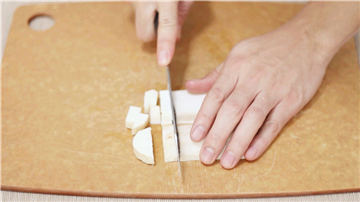 3. 山药去皮切小块后,再次放入滴有白醋的水中,防止氧化