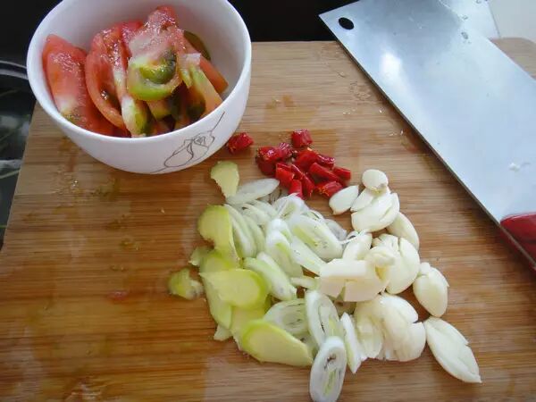 小米辣切段儿,西红柿切片