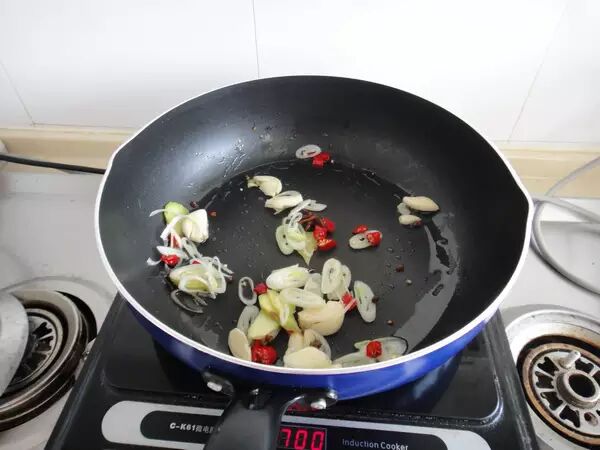 姜块和蒜片,急火翻炒两下爆香