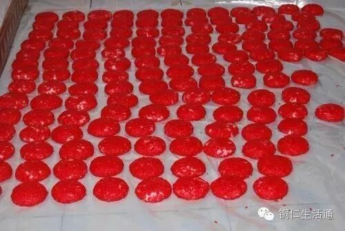 红粑红粑也是铜仁人过年必有的年货之一红粑以糯米为主,粘米配料,以食用“品红”(本地人叫“粑粑红”)为颜料。经过碎米、打芡、揉团、分等、滚红米、上蒸笼、手工压型等几道主要工序精制而成红粑色泽红艳,形状扁圆,气味香甜,食用方便