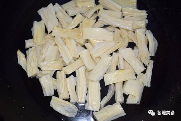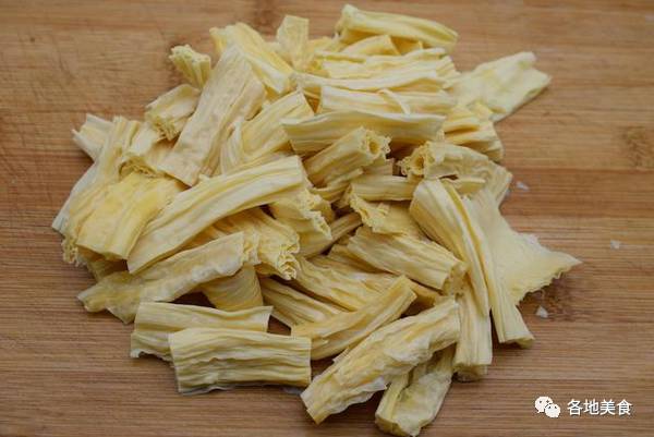 烹饪技巧: 1,腐竹清水清洗下,用刀切成段。