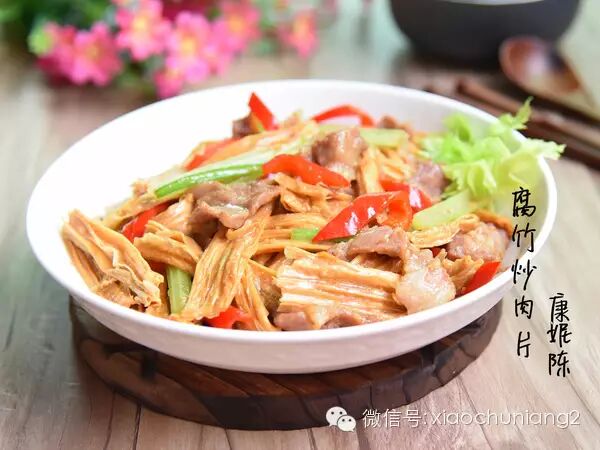 2腐竹要浸泡软,和肉片一起炒不用加水,而且腐竹入锅后炒多一会儿,将腐竹炒出点点水分。