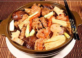 2.与腐竹、扁豆、淮山、冬菇入锅烧开,文火煮两小时调味即可