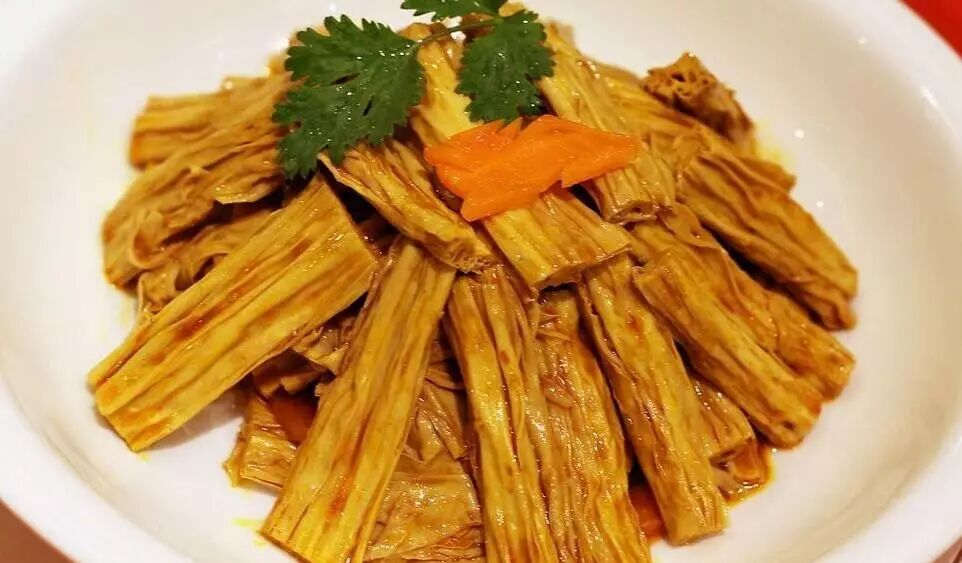 用料:腐竹、黑木耳、胡萝卜、盐、味精、生抽、醋、香油、辣酱